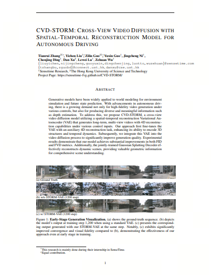 Generative models have been widely applied to world modeling for environment simulation and future state prediction. With advancements in autonomous driving, there is a growing demand not only for high-fidelity video generation under various controls, but also for producing diverse and meaningful information such as depth estimation. To address this, we propose CVD-STORM, a cross-view video diffusion model utilizing a spatial-temporal reconstruction Variational Autoencoder (VAE) that generates long-term, multi-view videos with 4D reconstruction capabilities under various control inputs. Our approach first fine-tunes the VAE with an auxiliary 4D reconstruction task, enhancing its ability to encode 3D structures and temporal dynamics. Subsequently, we integrate this VAE into the video diffusion process to significantly improve generation quality. Experimental results demonstrate that our model achieves substantial improvements in both FID and FVD metrics. Additionally, the jointly-trained Gaussian Splatting Decoder effectively reconstructs dynamic scenes, providing valuable geometric information for comprehensive scene understanding.
